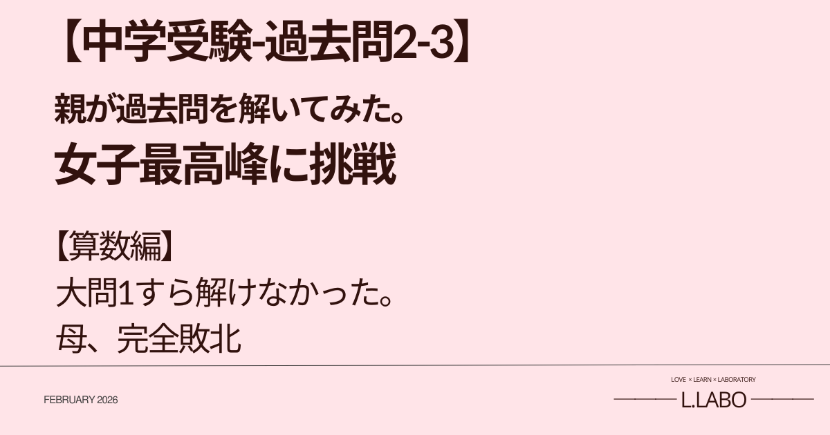 大問1。 四則計算。 「これくらいなら…」 そう思った。 でも、つまずいた。 計算の順番を工夫したり、まとめたりすれば解けるのだろう。 たぶん。きっと。おそらく でも、分からなかった。 偏差値55では、力ずくでも解けた。 筆算を何回も繰り返して、解いた。 でも、女子最高峰は、それすらできなかった。 大問1の計算すら、解けなかった。 レベルが違う。 <全く解き方わからなかった
